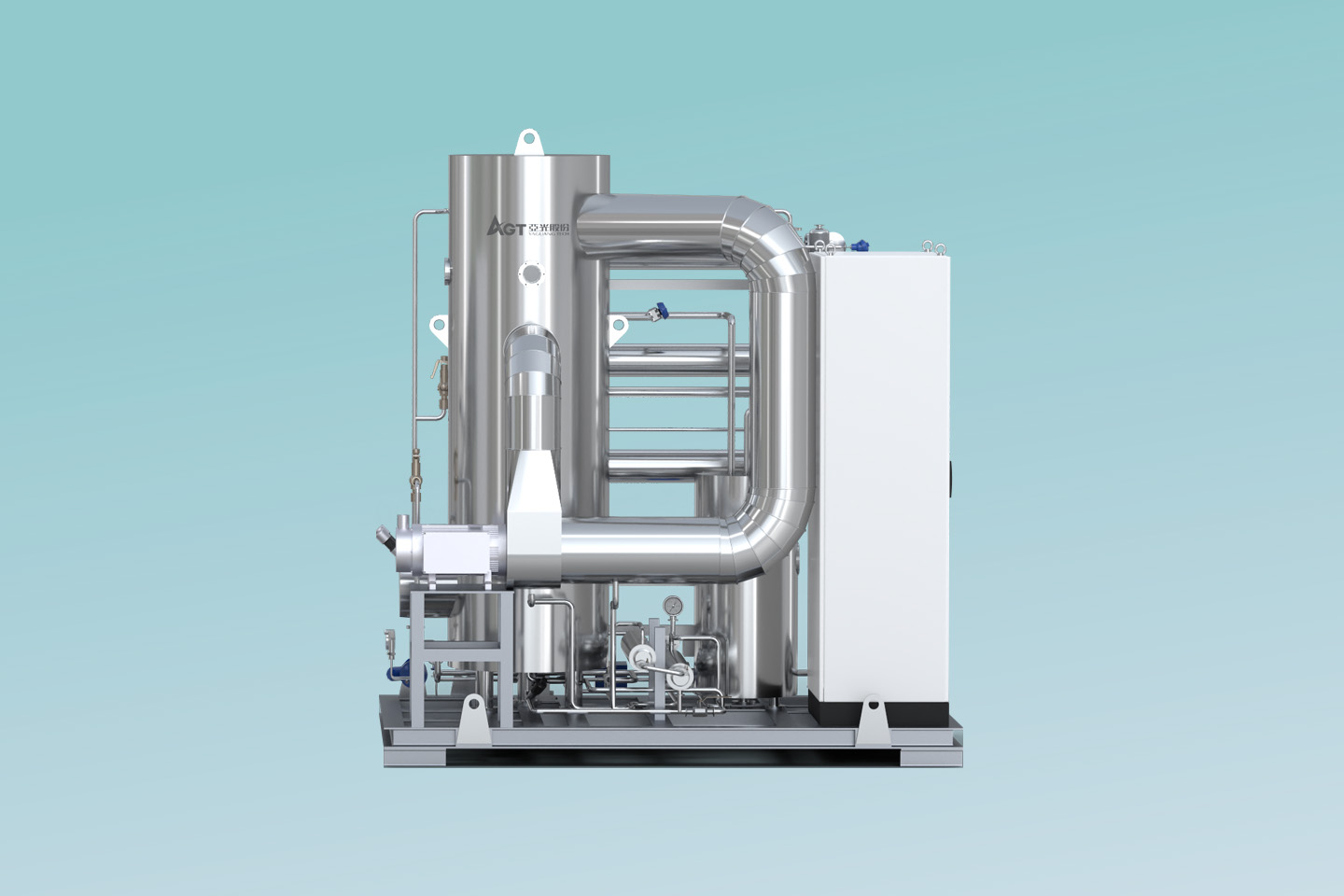 MVR熱泵精餾系統(tǒng)以高效旋轉(zhuǎn)精餾床為基礎(chǔ),利用離心力場代替重力場,強(qiáng)化相與相之間的相對速度和相互接觸,通過強(qiáng)化傳質(zhì)傳熱來提高分離效率縮小設(shè)備體積。 通過在系統(tǒng)中引入適用于小流量、大壓比的螺桿式蒸汽壓縮機(jī),即可實(shí)現(xiàn)MVR循環(huán)熱泵精餾。